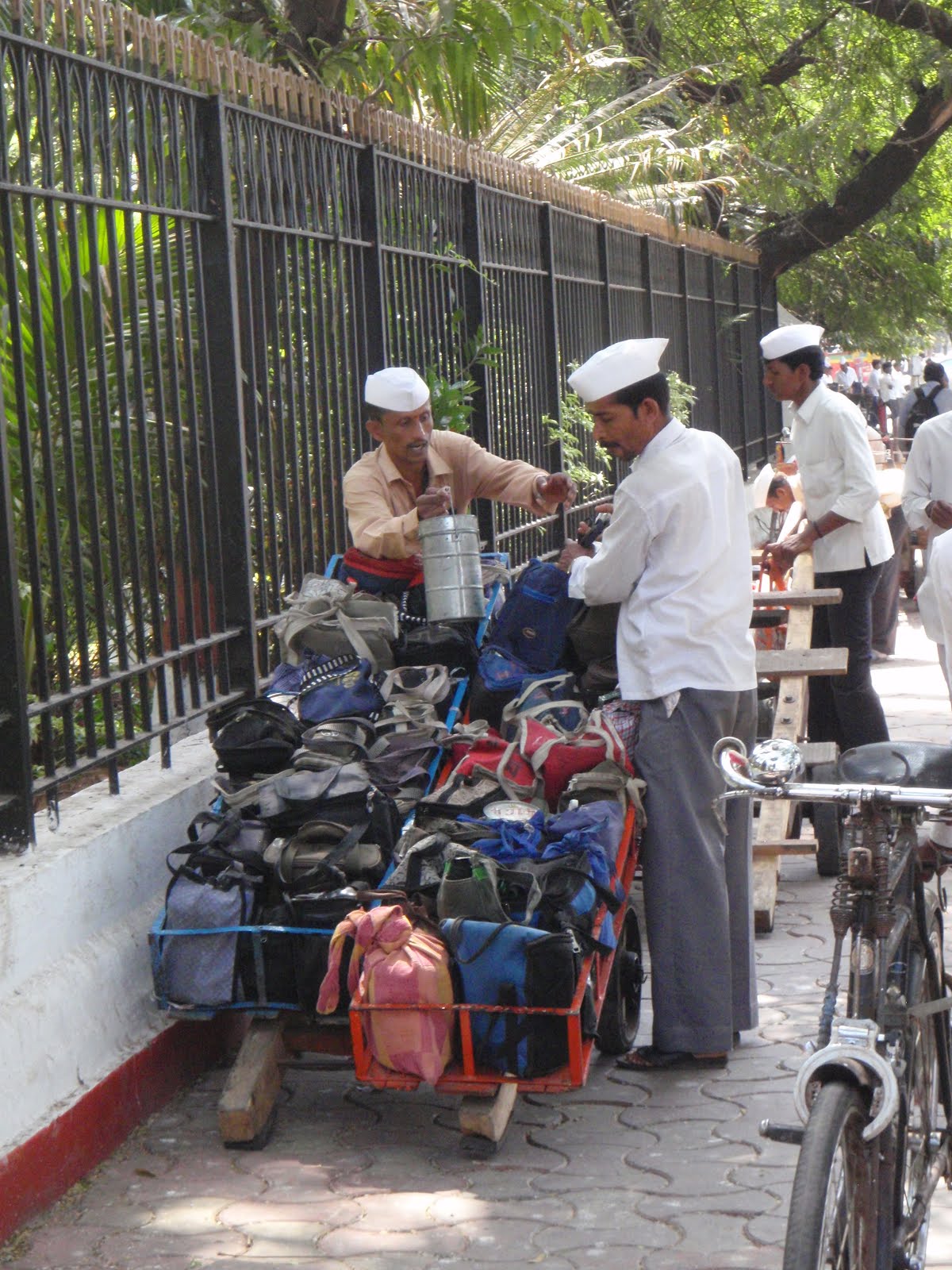 Then we went to see Dabbi Walla in action. This is the process of picking up lunches at working men’s homes, delivering them to the office, and then returning the empty containers. We saw hundreds and hundreds of containers as they were brought from the train stations, sorted, loaded onto handcarts or bicycles, and headed for distribution. We don’t understand how it works but were assured that it is entirely accurate.